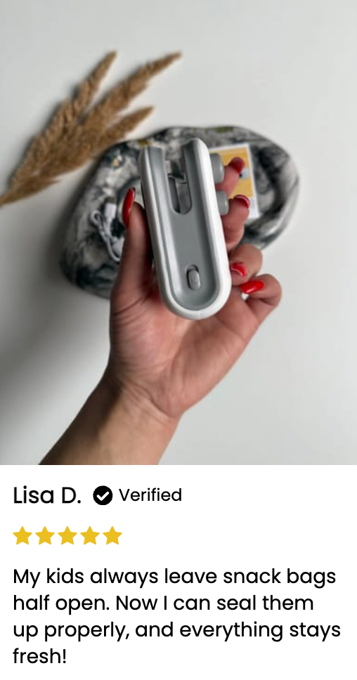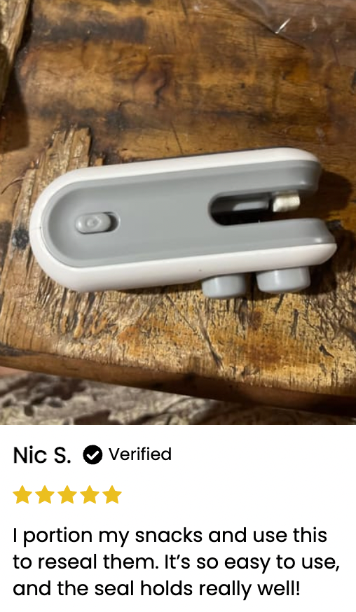 ✅ 2-in-1 Functionality – Seals bags airtight to keep food fresh and includes a built-in cutter for easy opening.