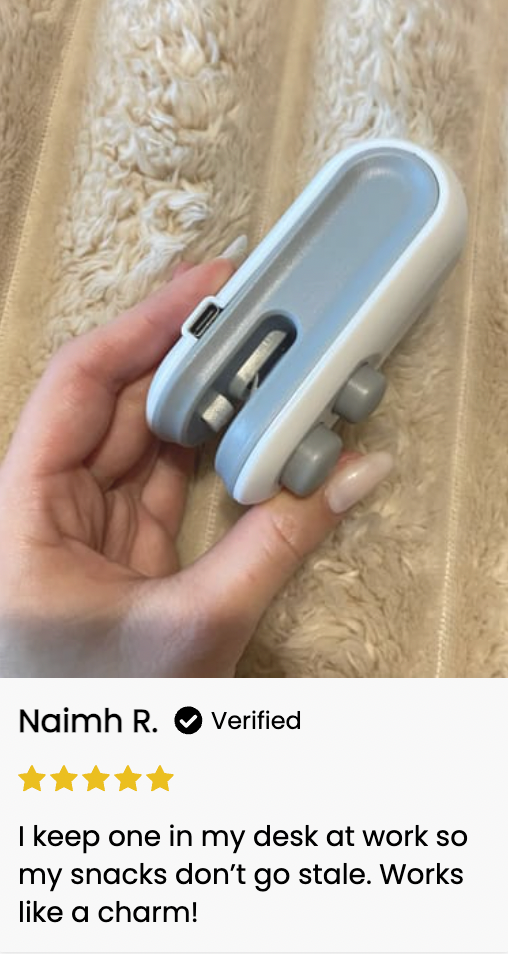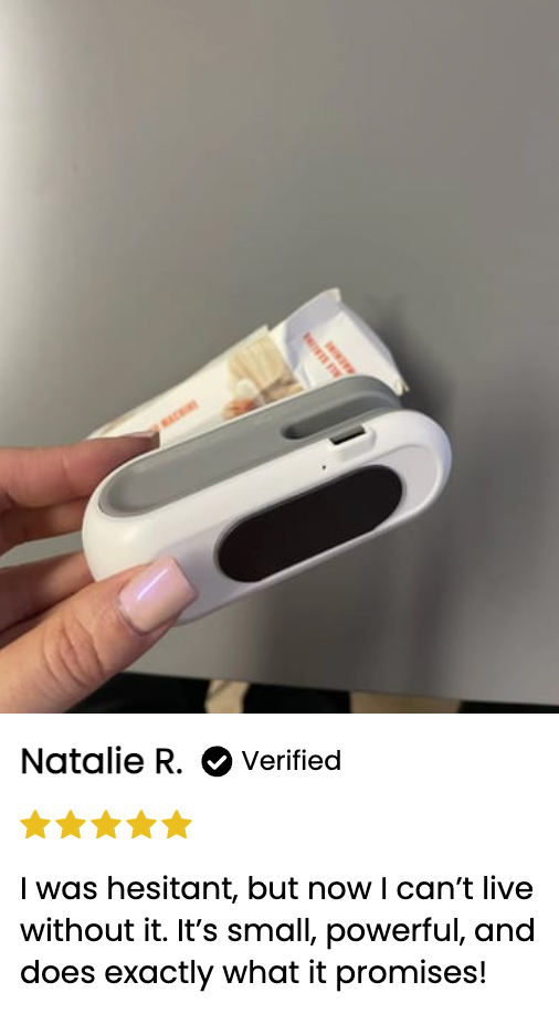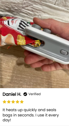 Our 2-in-1 Bag Sealer quickly seals bags airtight in seconds, helping to preserve freshness and reduce food waste. The innovative design also includes a built-in cutting blade, allowing you to effortlessly open packages without the hassle of tearing or spills. Its magnetic back makes it easy to stick to your fridge or any metal surface, keeping it within arm’s reach for a quick, hassle-free experience in the kitchen. Perfect for keeping your food fresh and your kitchen organized, all with a simple press of a button.