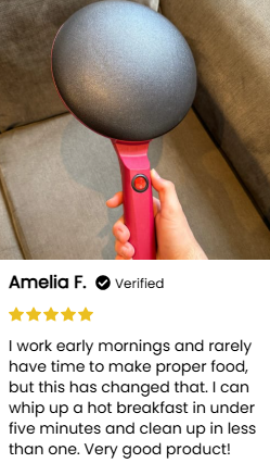 ✅ Fast Heat-Up – Preheats in seconds for quick crepes, eggs, or pancakes.