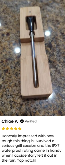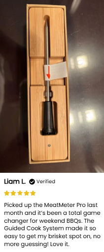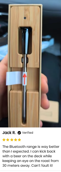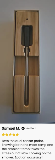 1. Insert the Probe - Place the MeatMeter Pro™ dual-sensor probe into your meat, ensuring it is properly positioned to measure both internal and ambient temperatures.