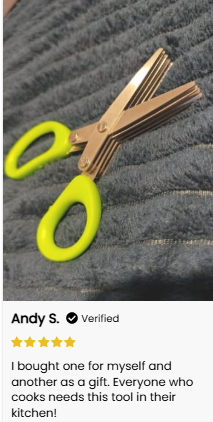This Multiblades Kitchen Scissors is your go to kitchen companion for effortless herb prep. Featuring ultra sharp stainless steel blades, it delivers uniform cuts in seconds, doing the work of 10 knife chops at once.