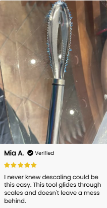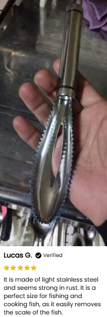 ✅ Dual Serrated Blade – Quickly strips off both large and fine scales with ease.